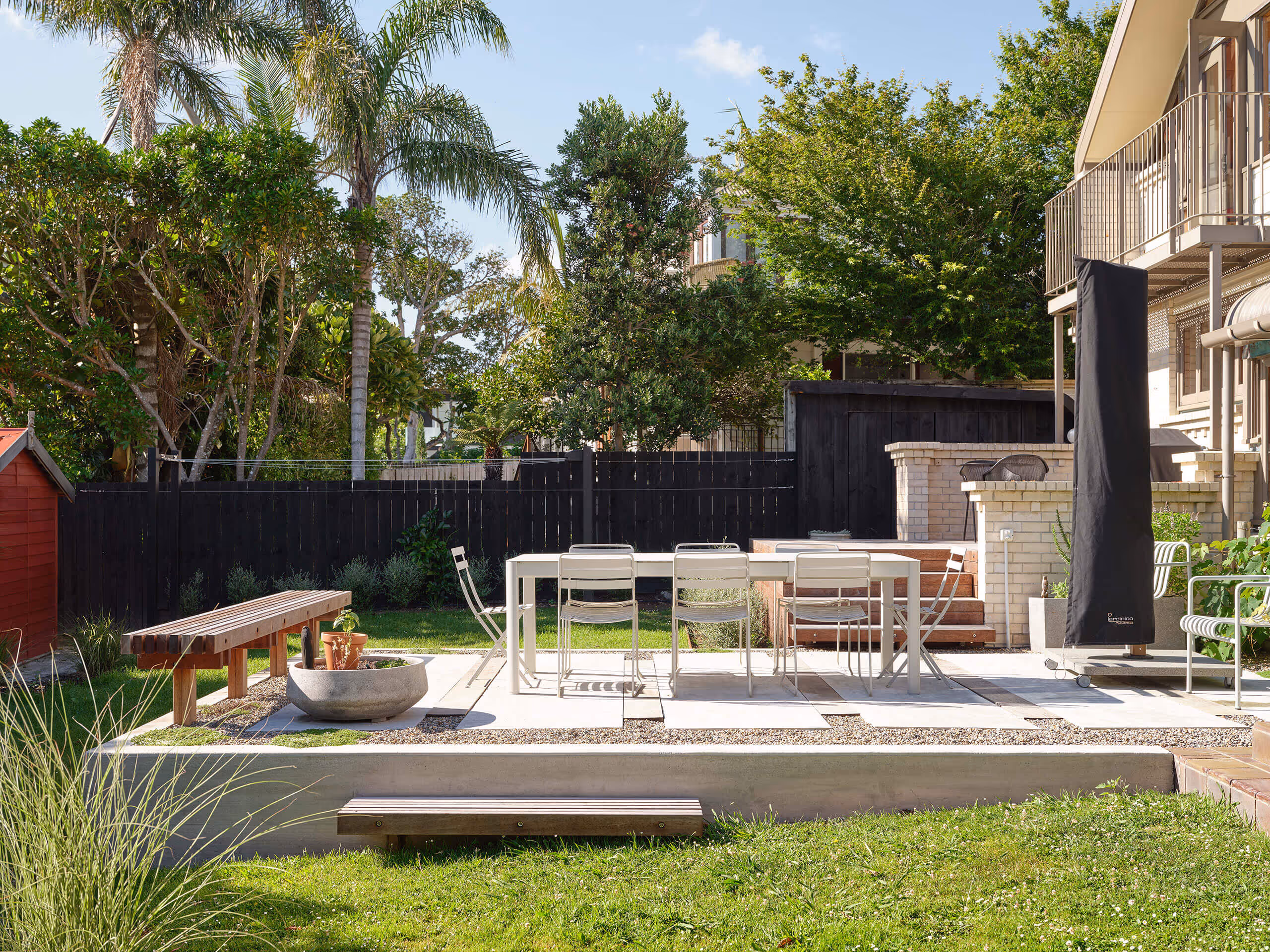 Our latest project was smaller in scale, but possibly the most intricate. The house – a double-brick build from 1972 – has a quirky plan, with curving walls and detailed brickwork throughout. We needed a sensitive upgrade to create a modern kitchen, renovate an existing upstairs bathroom, add a new bathroom downstairs, build a laundry nook, and complete extensive hard landscaping.